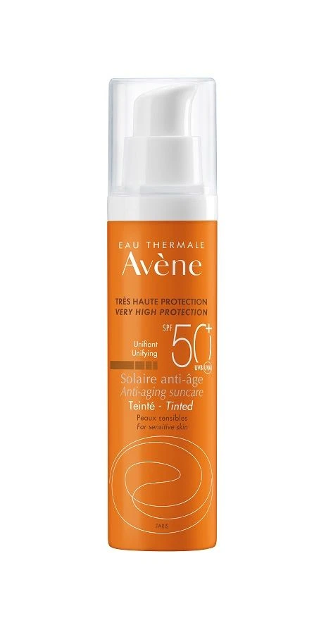 Trattamento solare anti-età colorato 50+ per viso e collo.