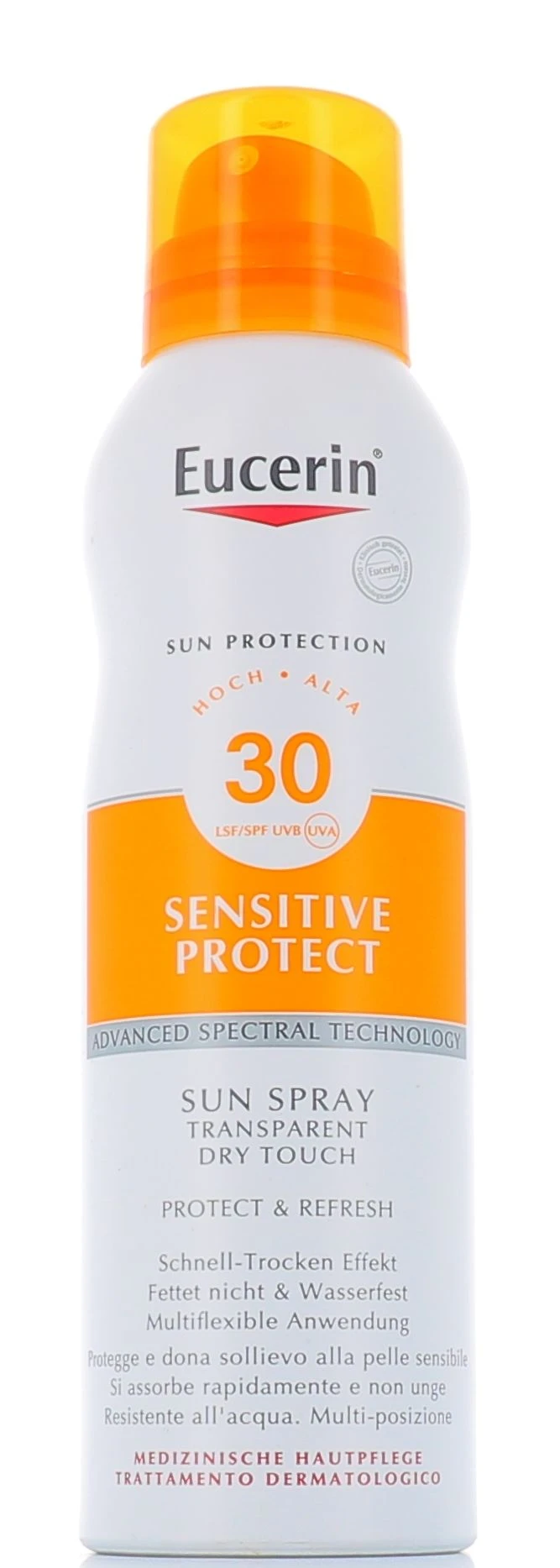 Eucerin Sun spray tocco secco FP 30 è un’ efficace protezione solare corpo in spray aerosol appositamente sviluppato per la pelle sensibile.