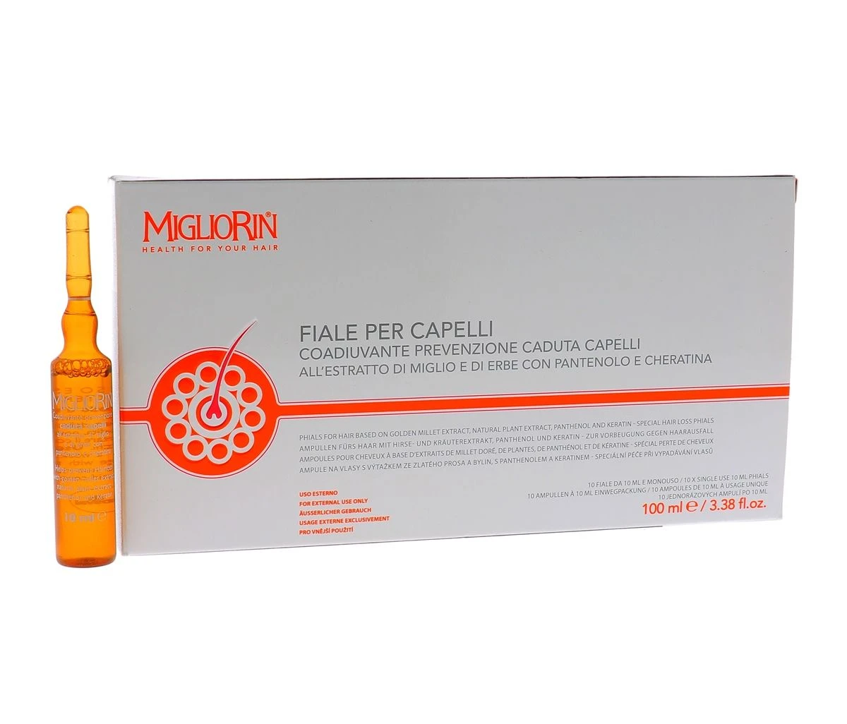 Fiale capelli per la prevenzione della caduta dei capelli, a base di estratti di Miglio e di erbe, con Pantenolo e Cheratina.